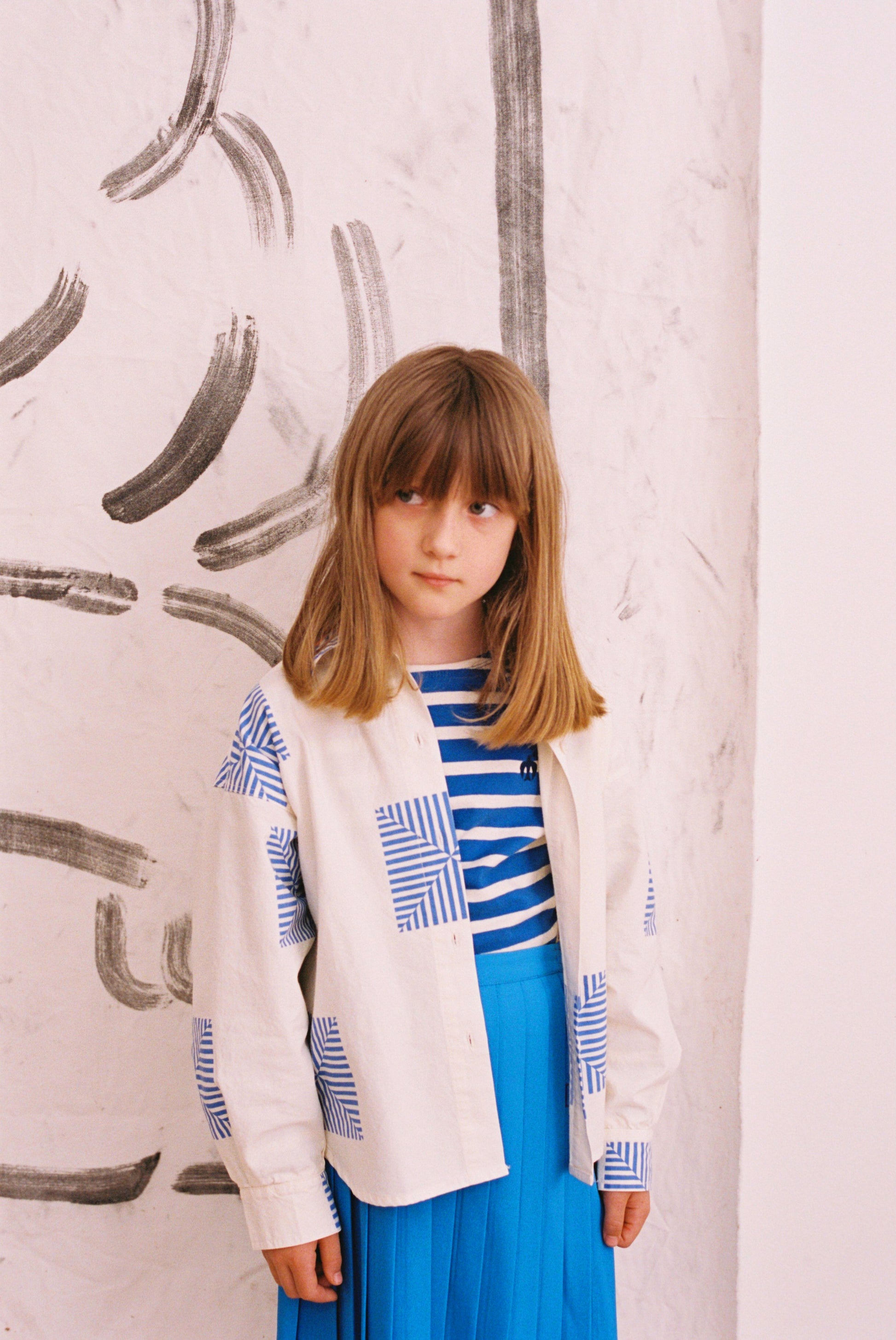 Aerosol Skirt is made of 100% polyester. This vibrant skirt features a classic pleated design in a cheerful bright blue hue. It has a comfortable elasticated waistband for an easy fit. A "TA" embroidery in purple is placed on the left side, adding a signature detail. It has an evasé fit. Made in China.