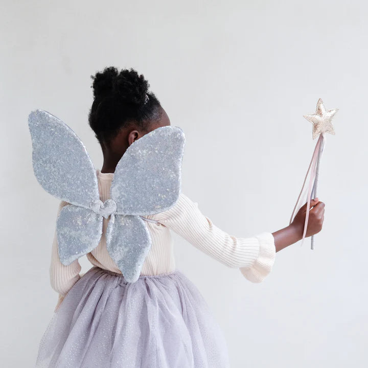 Shimmer and shine, glitter and sparkle with these show stopping gold sequin fairy wings! Completely covered in gold sequins, these wings have elasticated straps and a pretty sequin covered heart at the centre. A magical birthday gift idea!